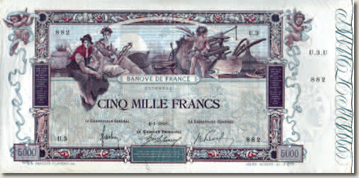 La grande rareté de ce billet, qui semble ne pas avoir été conservé dans la prestigieuse collection de la Banque de France et sa notoriété qui ne fait que croître, sont des atouts majeurs pour que ce billet devienne une des pièces maîtresses de la collection. D'après mes dernières recherches, le dernier alphabet sensé être sorti de l'imprimerie de Chamalières est l'alphabet 11124, le fait de posséder l'un des six billets sauvegardés par le Gouverneur de l'époque, qui fait partie des billets jamais sortis officiellement (toute l'année a été détruite), est quasiment aussi enivrant que le fait d'acquérir un des 6 premiers exemplaires émis.