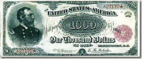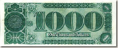 Ce qu'il est important de souligner, c'est que trois exemplaires de cette coupure existent au Trésor Américain et que 4 exemplaires seraient connus en collections privées. Il n'est pas interdit parfois d'émettre quelques réserves sur quelques records mais ce dont il est certain c'est qu'il n'est pas rarissime de trouver dans des catalogues de ventes de billets américains des billets à plusieurs centaines de milliers de dollars: nos billets les plus rares et les plus prestigieux sont encore très loin d'atteindre de tels prix.